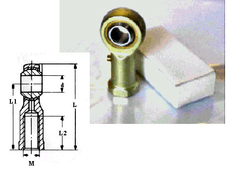 Testa a snodo con foro Filetto femmina Sinistro .Accoppiamento acciaio\bronzo